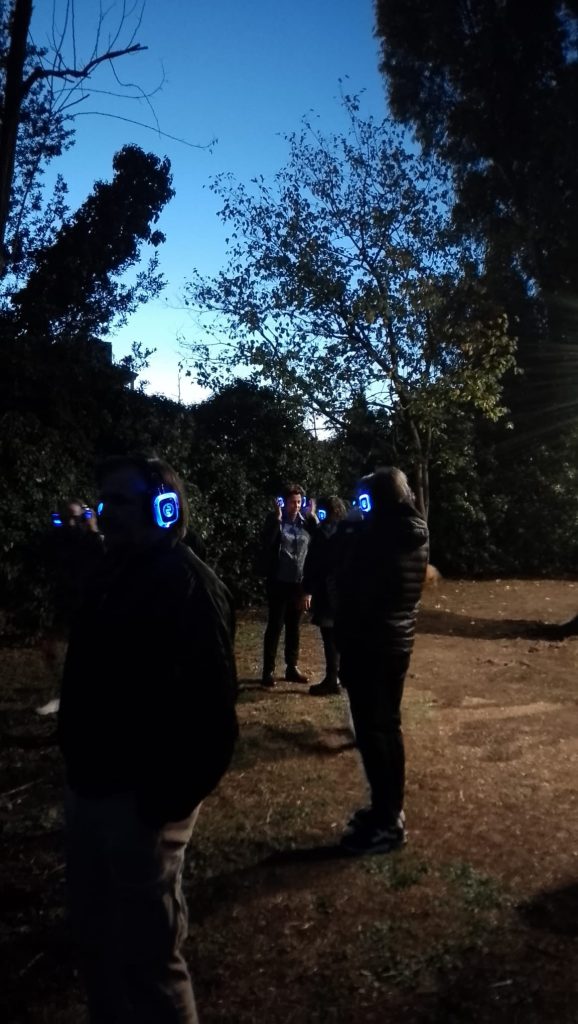 Il giorno dopo Urban Experience è a Villa Flora con un walkabout dal titolo La rigenerazione umana per la rigenerazione urbana che anticipa Teatro di Cuocolo-Bosetti. Questa combinazione con un atto teatrale in quel contesto ha un particolare senso perchè lì Abraxa Teatro da anni, accolti dall’Associazione Villa Flora in uno degli ex fienili, programma iniziative teatrali. È stata una buona occasione per riflettere con le comunità territoriali (tra cui Antonio Aprile dell’ Associazione Amici di Villa Flora, punto fermo di quel territorio e Massimo Grippa di Associazione Villa Flora, Emilio Genazzini e altri amici di Abraxa Teatro), rappresentanti del Municipio XII (la consigliera Flavia Balestrieri e Fabio Bomarsi, Assessore alle Politiche Sociali) e l’Assessore all’Urbanistica di Roma Capitale Maurizio Veloccia (in messaggio vocale visto che un imprevisto dell’ultima ora gli ha impedito di arrivare) sulle sorti dell’ultima villa storica a godere d’interventi strutturali.Il confronto è serrato, partendo dal vecchio campo di bocce in uno spazio che è diventato presidio civico della Villa, arrivare alle Serre ove si riflette sugli interventi rigenerativi per creare coworking e spazi di socialità e infine alla Villa in rovina, già Casa Generalizia dei Servi di Maria. E’ qui che ascoltiamo un frammento del film di Nanni Moretti La Messa è finita in cui la villa era ambientazione di un centro di Igiene Mentale.